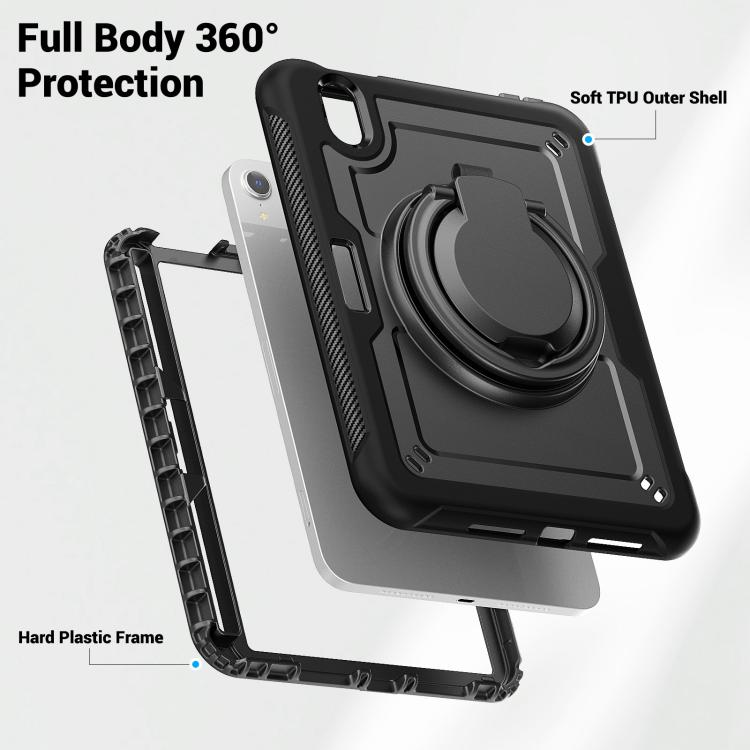 For iPad mini 2024 / mini 6 Honeycomb Hybrid Tablet Case with Handle Holder & Strap(Black)