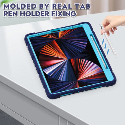 For iPad Pro 12.9 2022 / 2021 3-Layer Protection Screen Frame + PC + Silicone Shockproof Combination Tablet Case with Holder(NavyBlue+Blue)